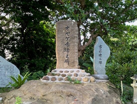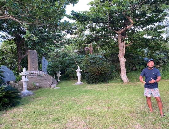 コーディネーター大浜さんによる歴史探訪ツアーで、縁の地を巡りながらオヤケアカハチの生まれや琉球王朝との関わりについて、演劇となって語り継がれる理由を知ります。