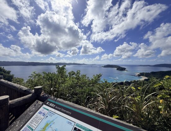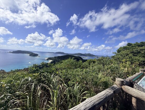 座間味島の展望台から望む青い海は、息をのむほどの美しさ。