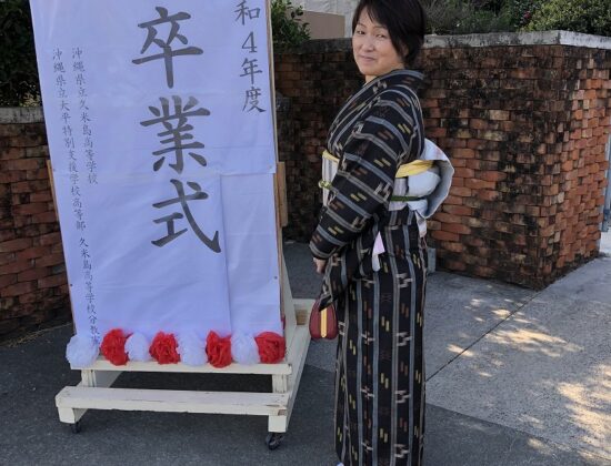 久米島高校卒業式では、離島留学生の保護者や分散会に参加する卒業生で久米島紬着用をご希望の方の着付をして頂きたいと思います。